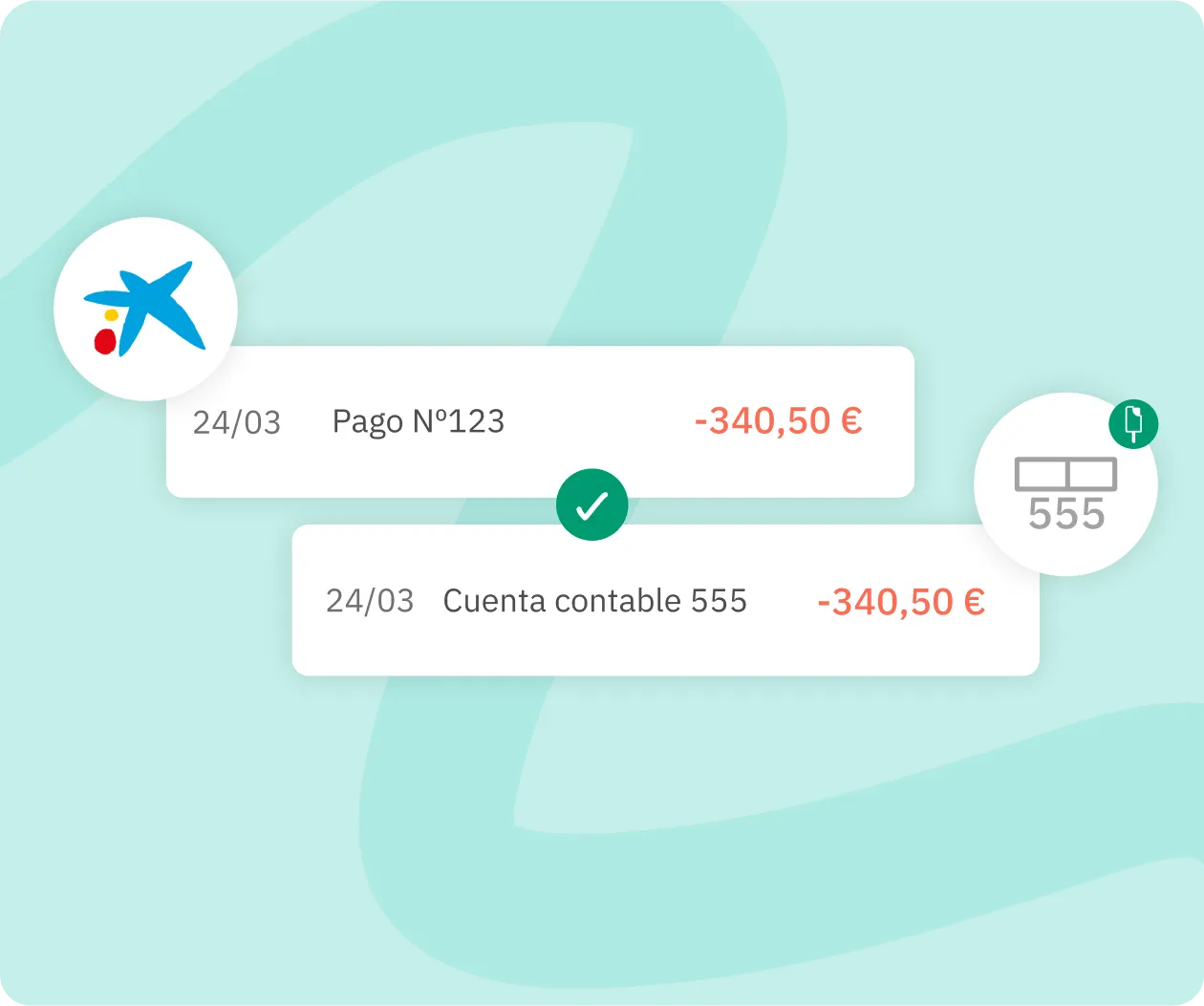 Asocia automáticamente los movimientos bancarios a tus facturas y acepta propuestas de conciliación en un solo clic.
