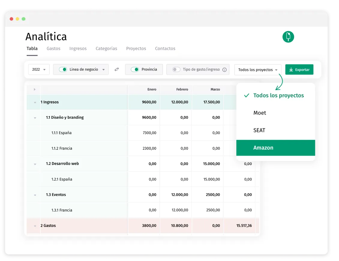 Crea proyectos y visualiza tu tabla en formato pérdidas y ganancias