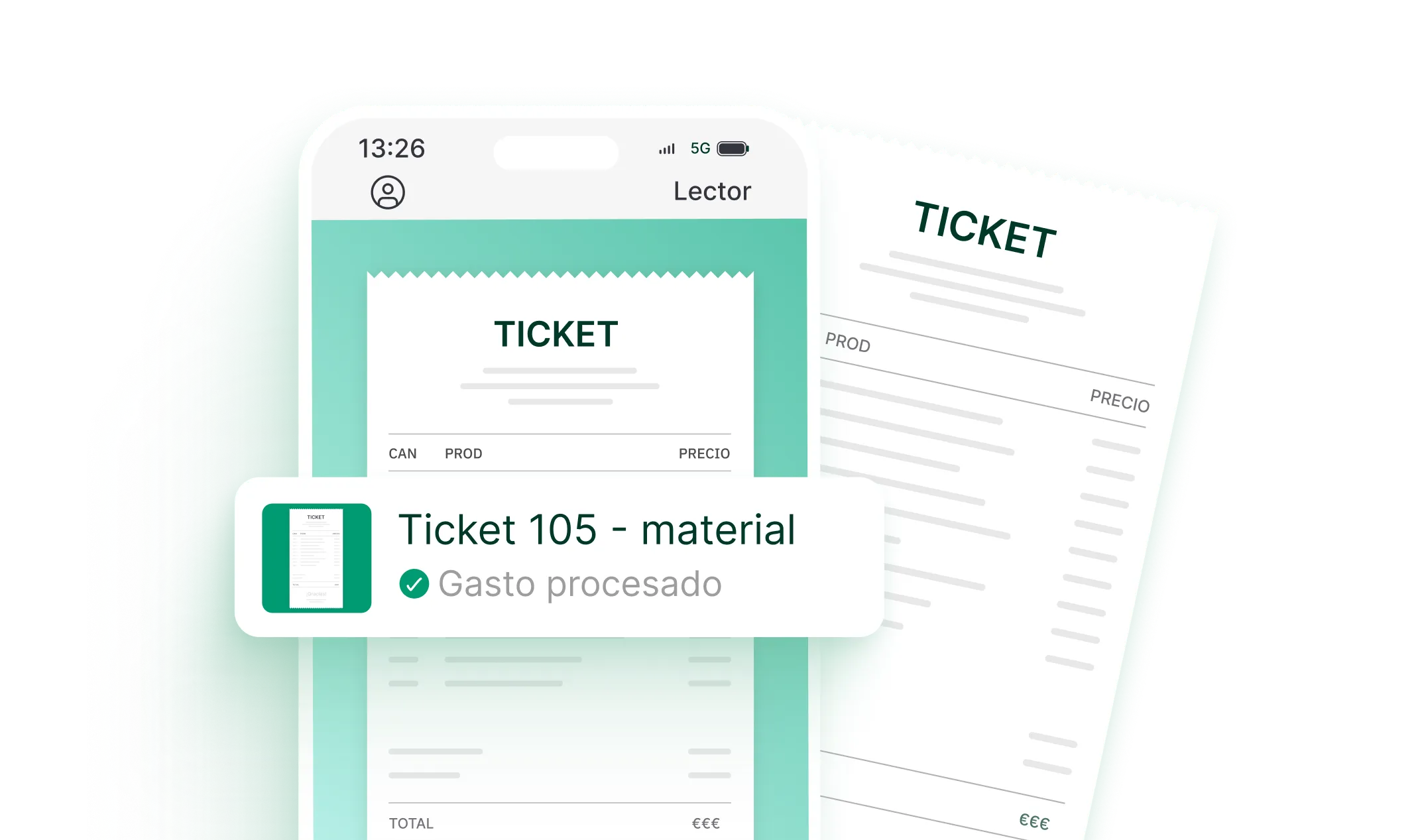 Registra cualquier ticket de gasto estés donde estés desde nuestra app móvil.