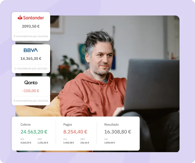 “De un vistazo conoces datos tan importantes como: los ingresos y gastos que has generado, así como el IVA e IRPF a liquidar.”