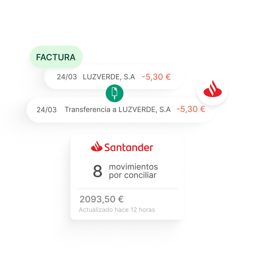 Controla quién te debe dinero, qué facturas están pagadas y cuáles están pendientes con las propuestas de conciliación automáticas.