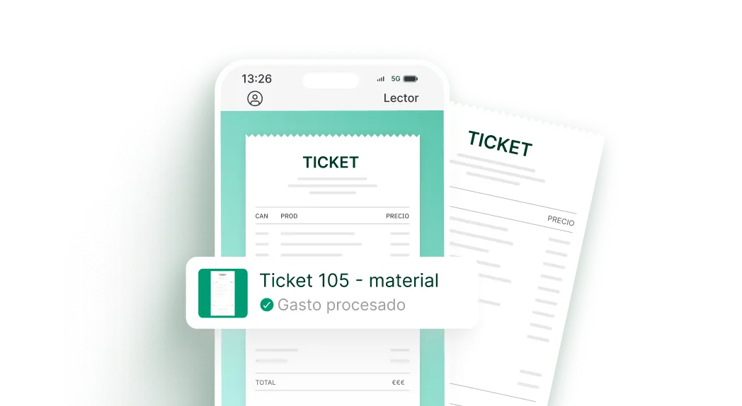 Factura en 30s y sube tickets con una foto. Ahorra más de 20h al mes.