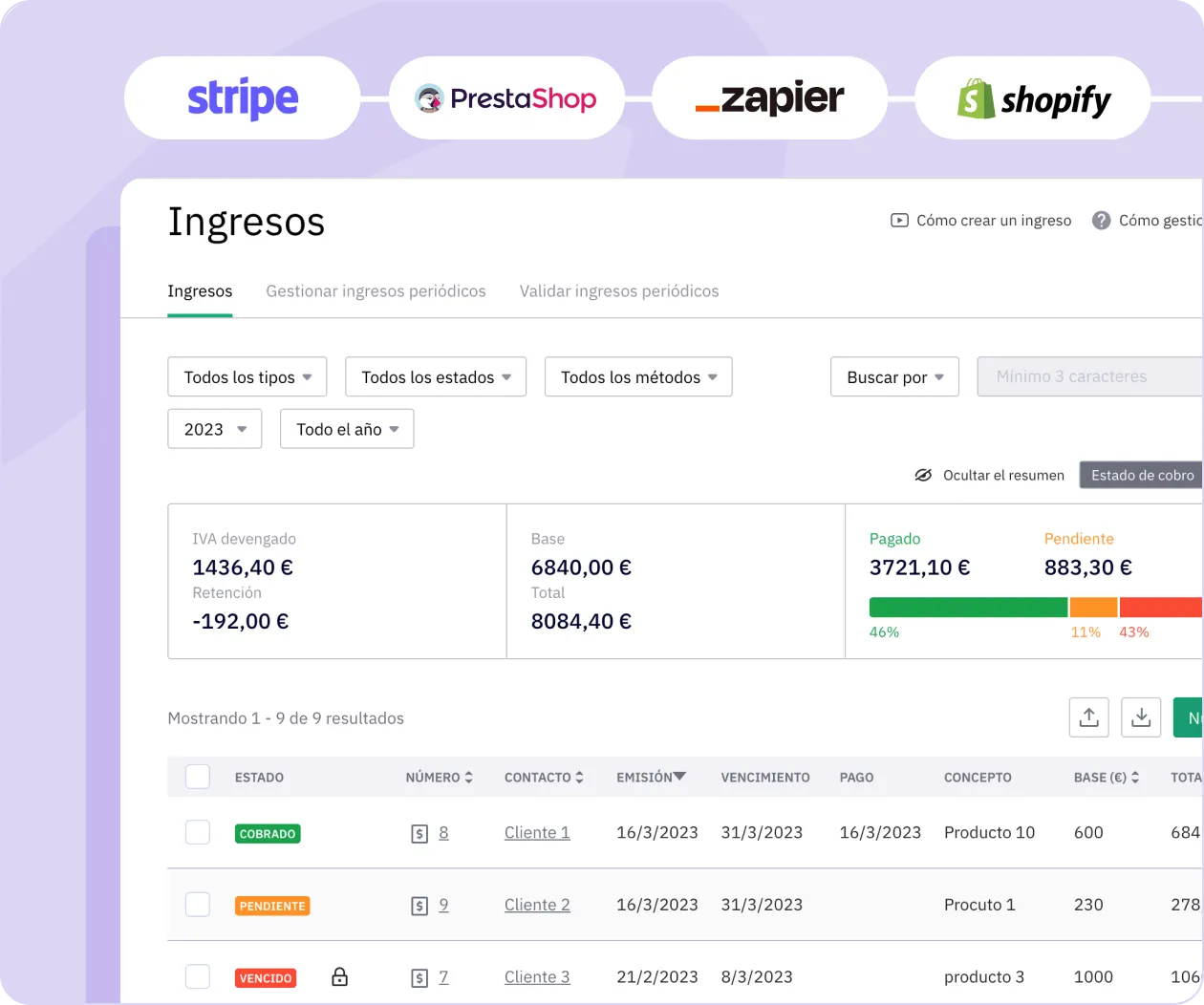 Integra tu cuenta de Quipu con Stripe, Paypal, Prestashop, Shopify, Zapier y otros